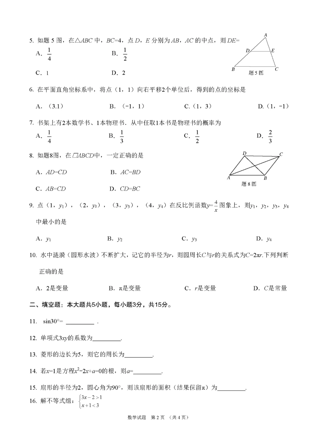 语文、数学、英语、物理、化学、道德与法治、历史、生物学、地理九个科目的中考试题和参考答案